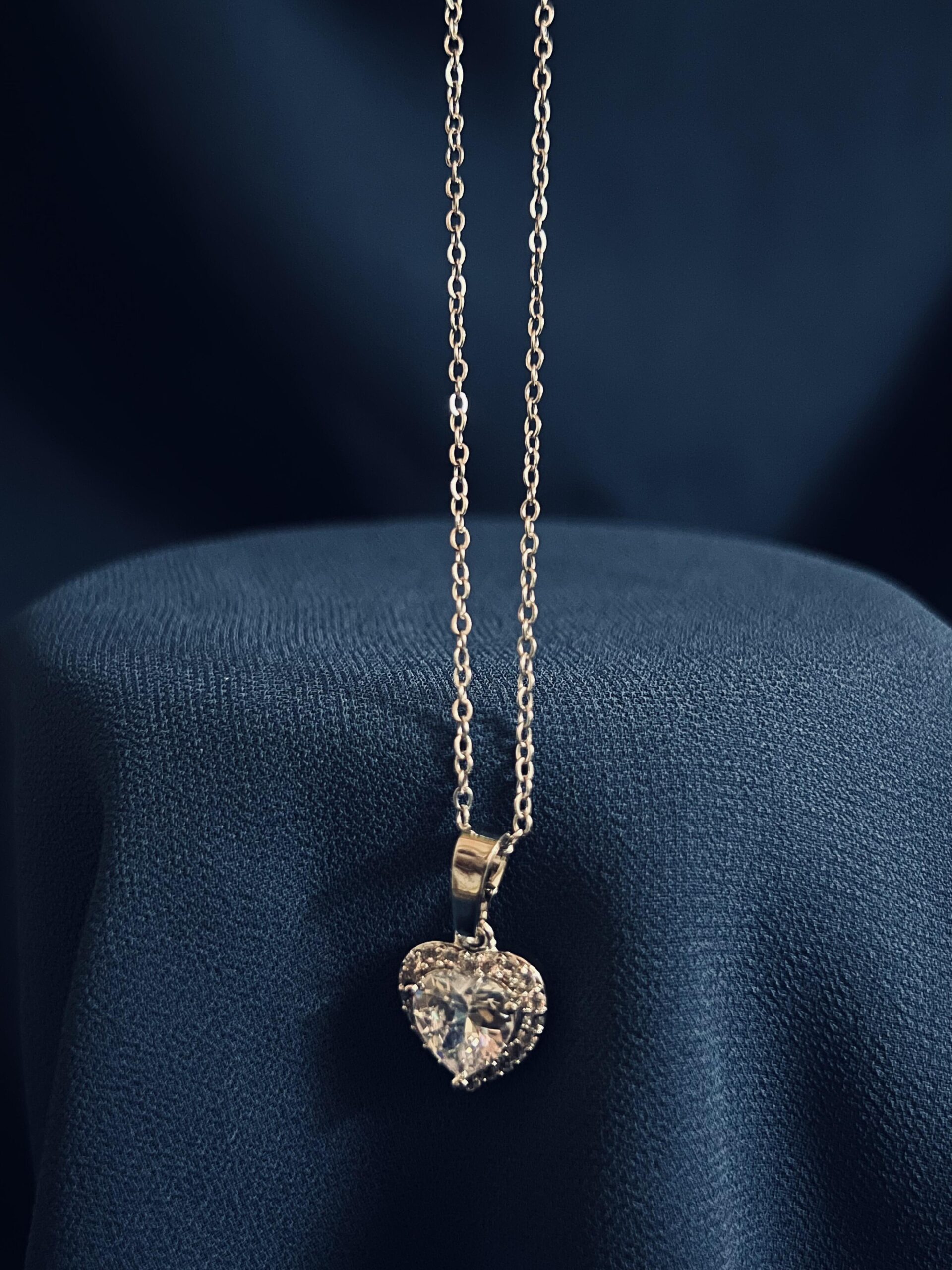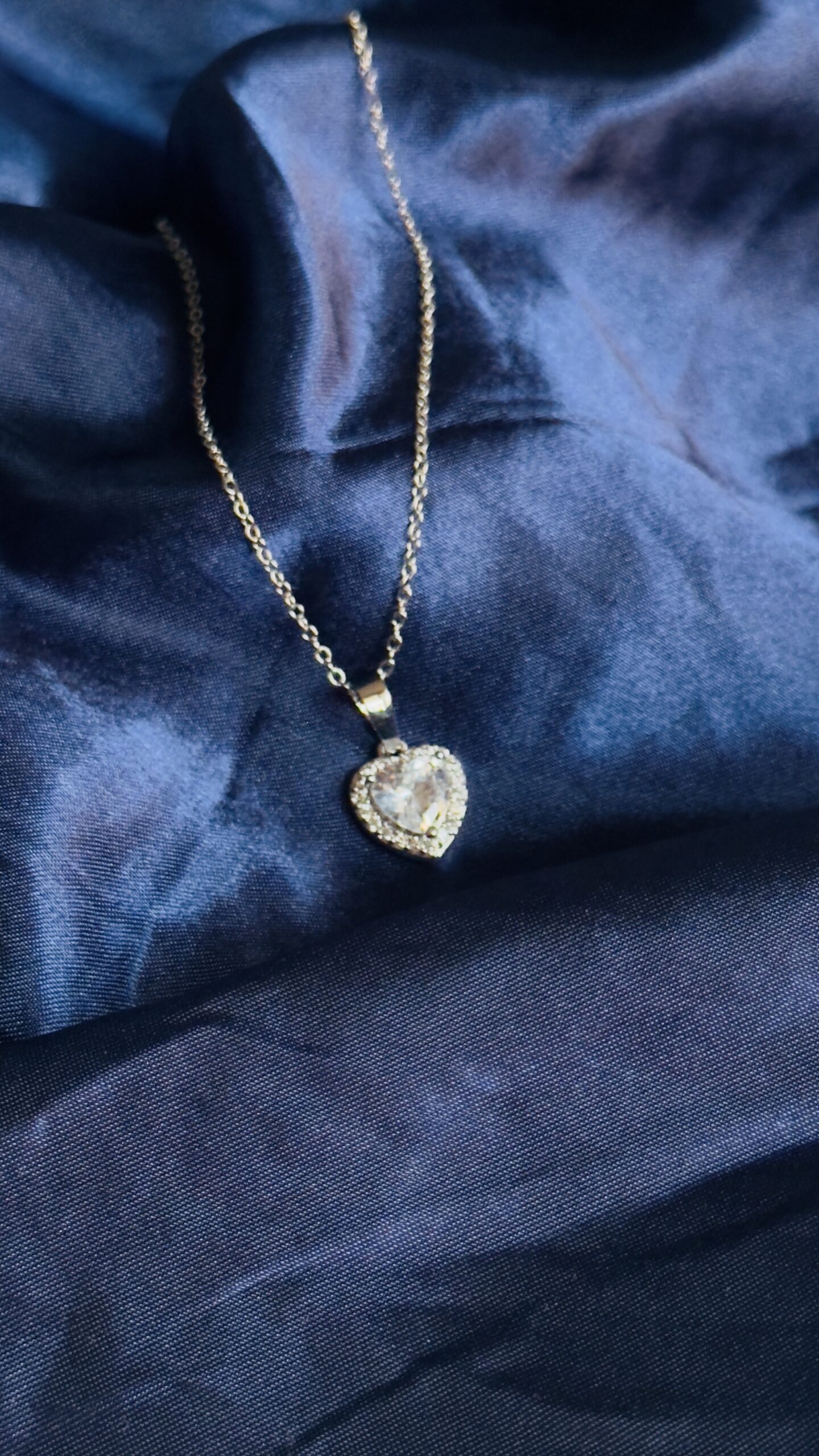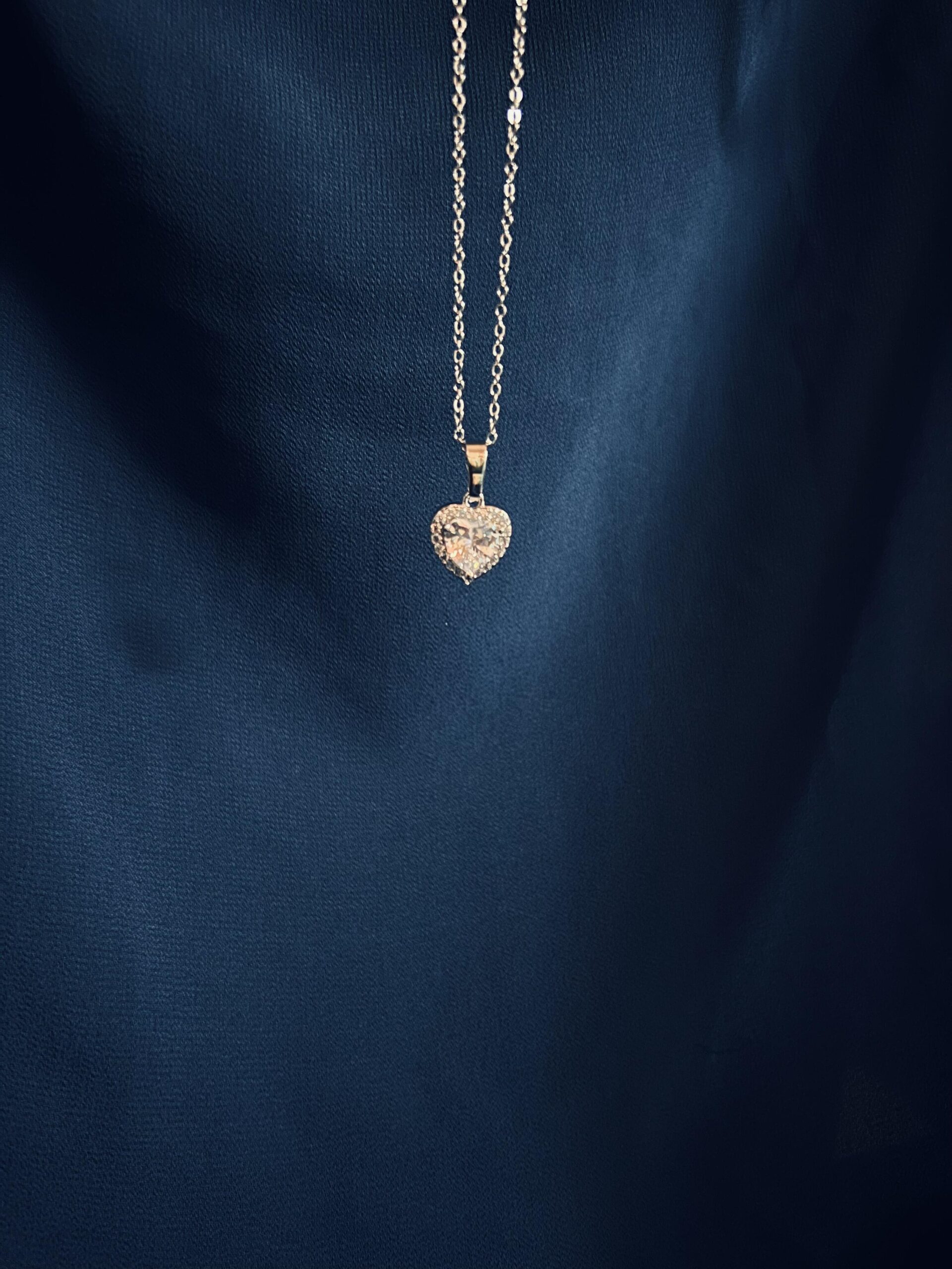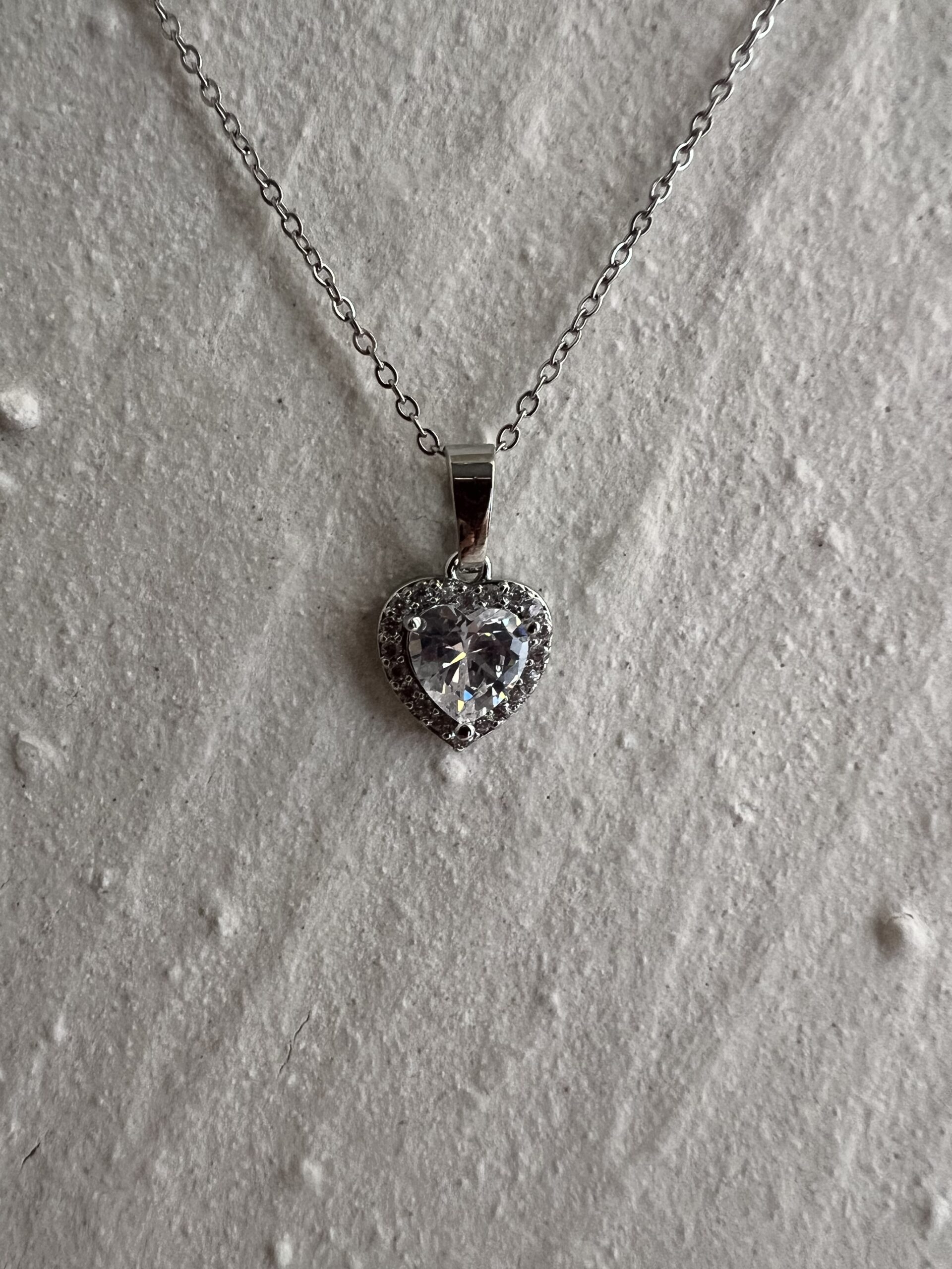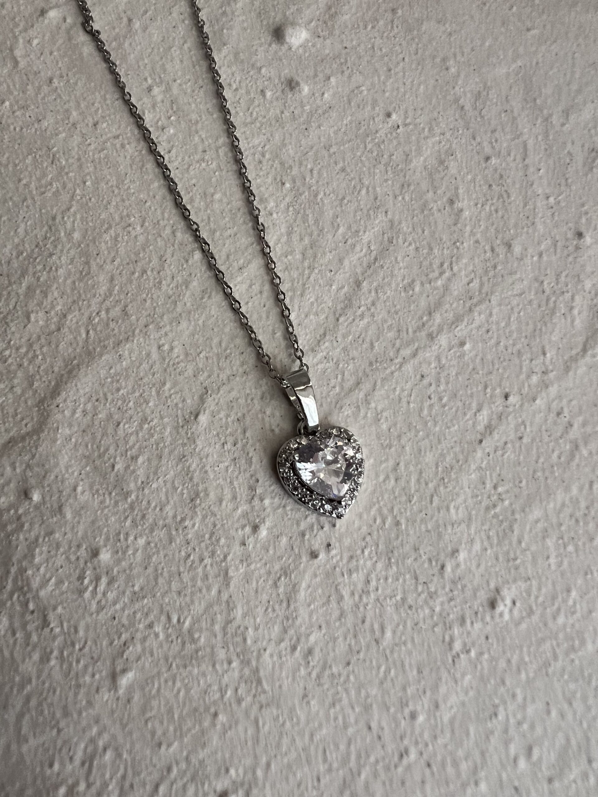 crystal heart necklace – silver