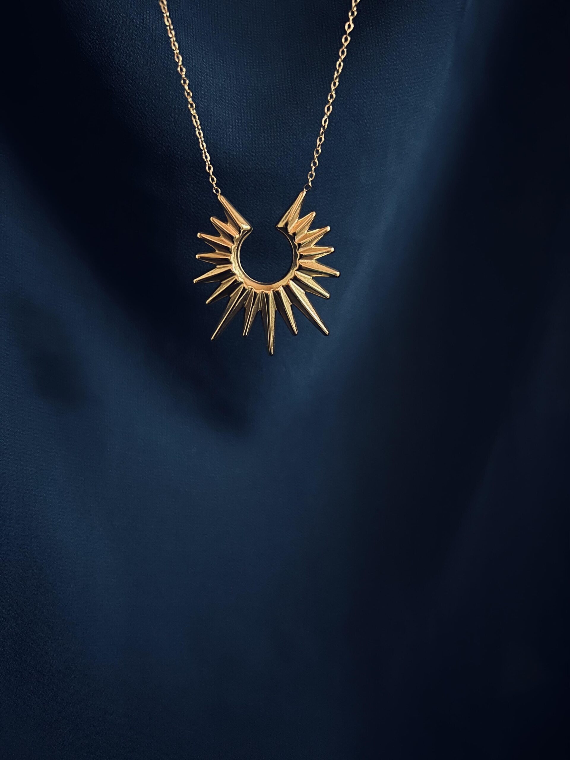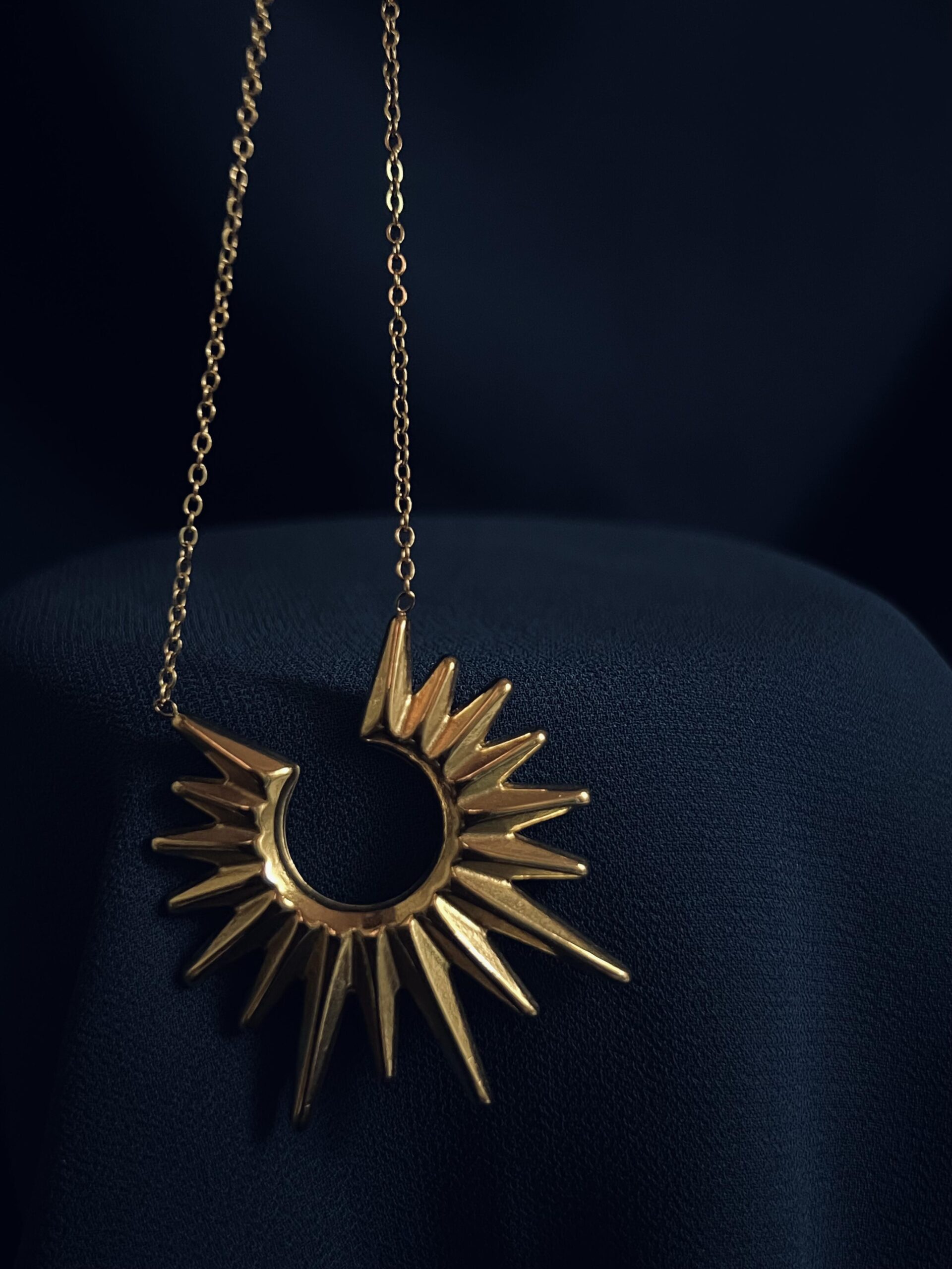 stainless steel gold necklace in the shape of ” Ra’a ” the sun symbol