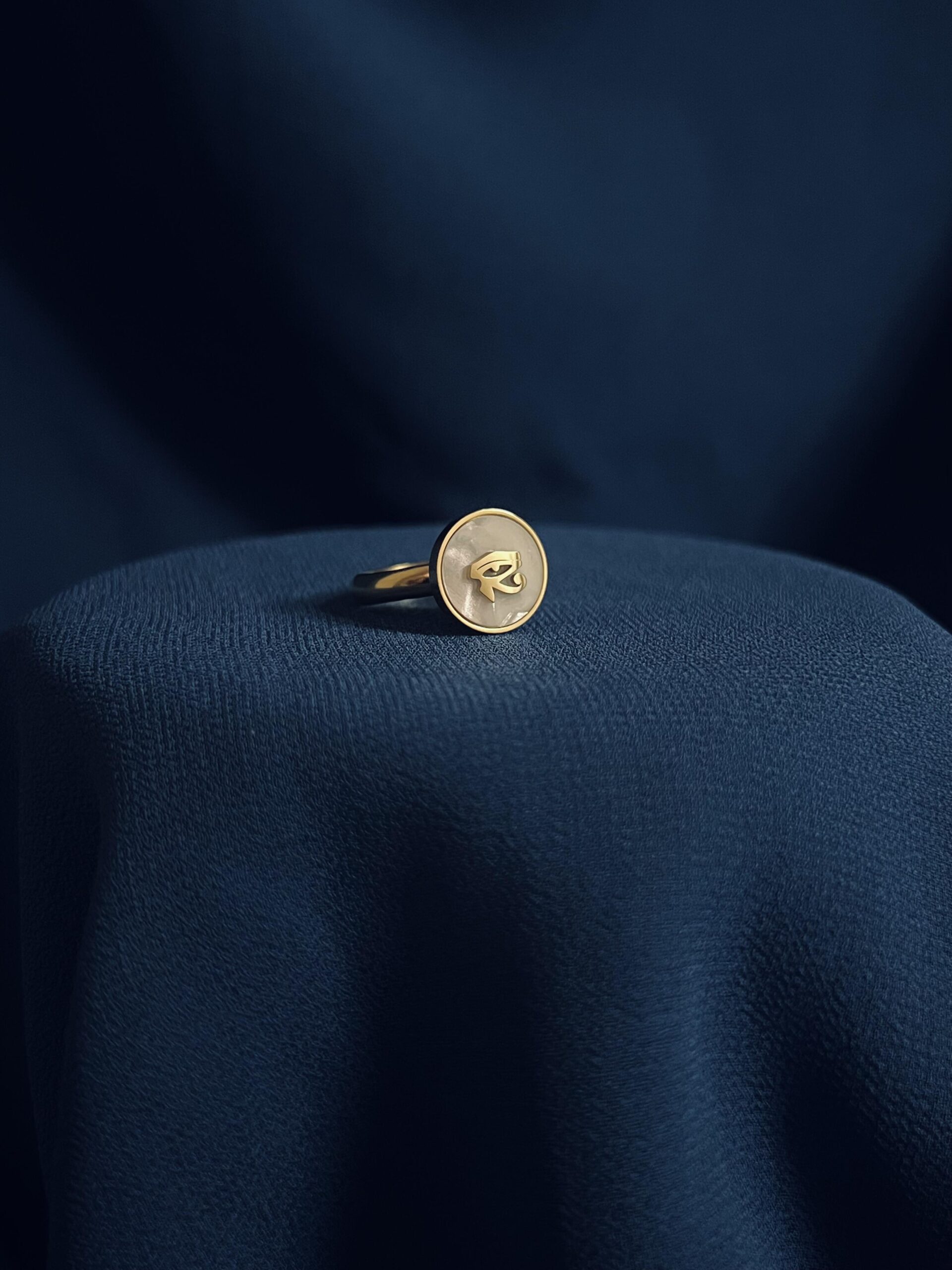Stainless steel gold ring, in the symbol of ” Horus ” Eye, Symbol of Insight – free size