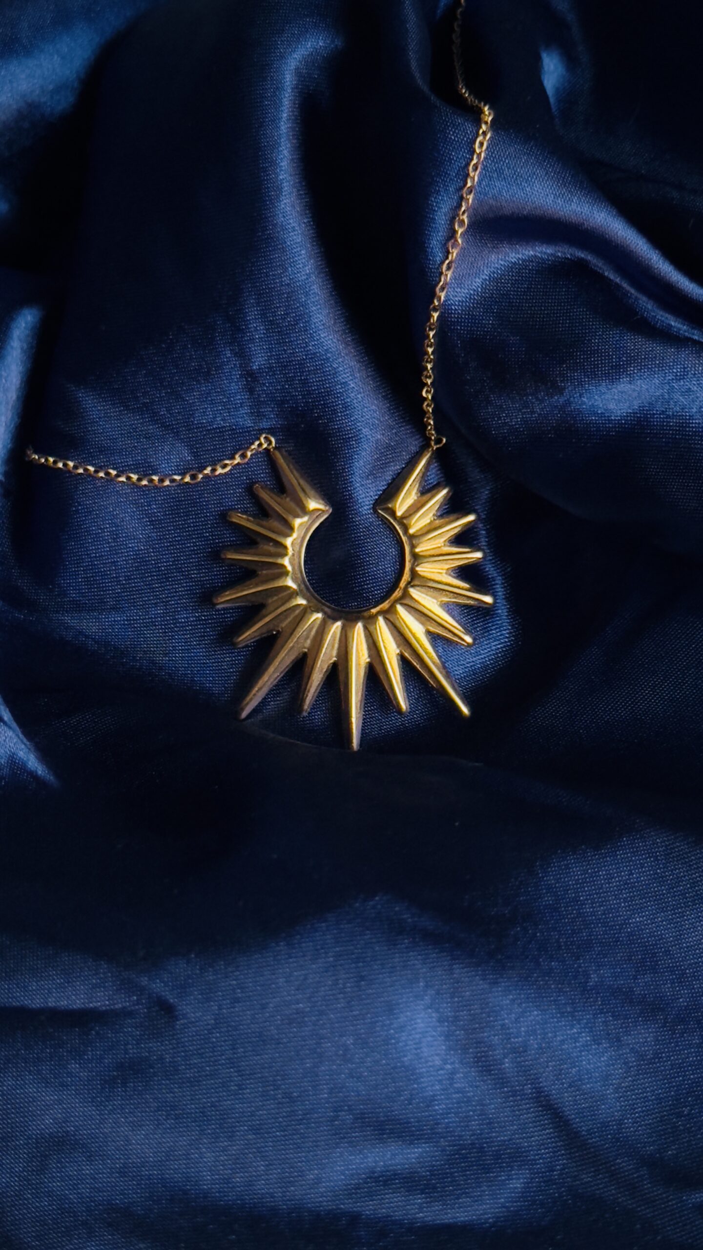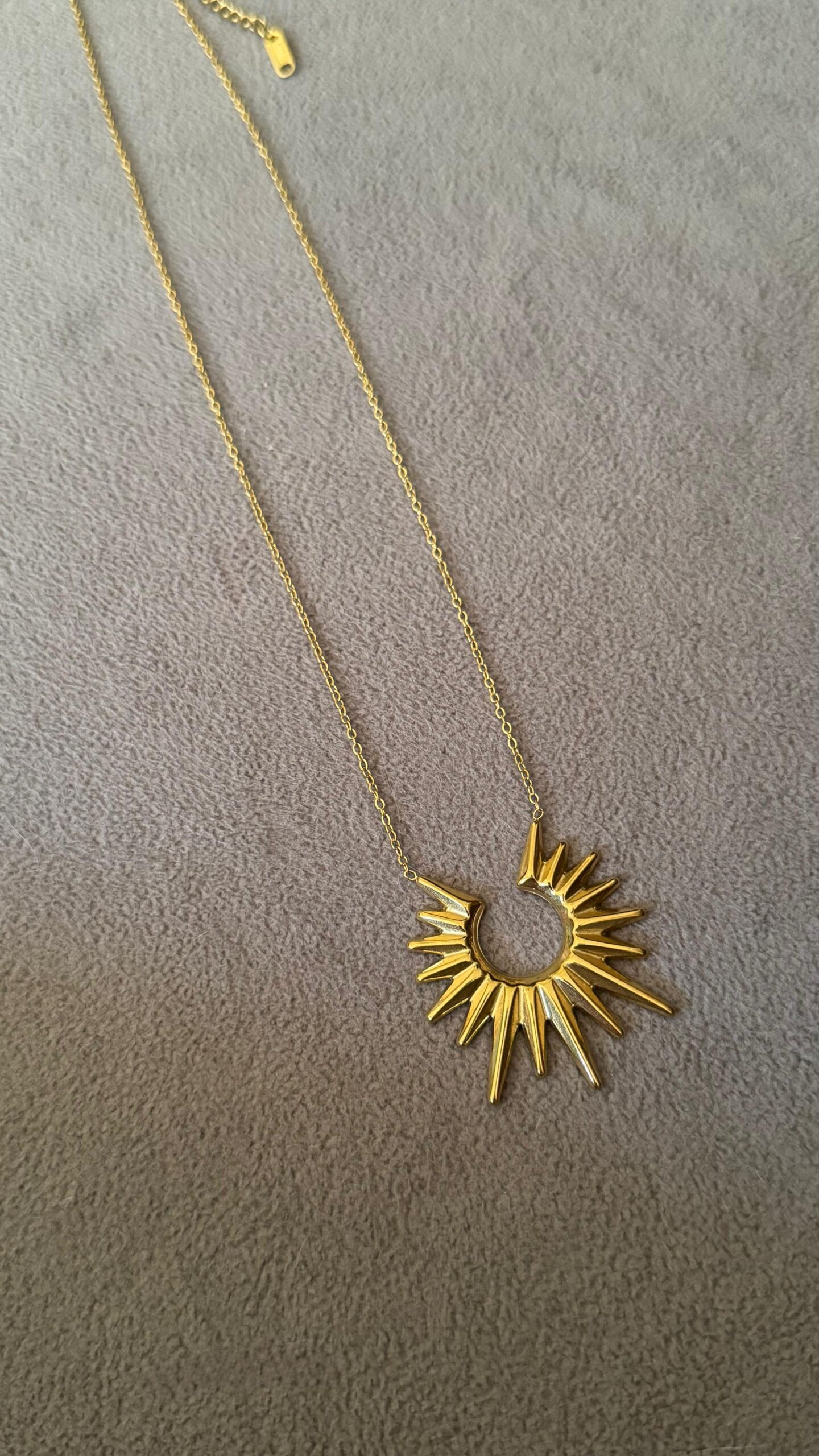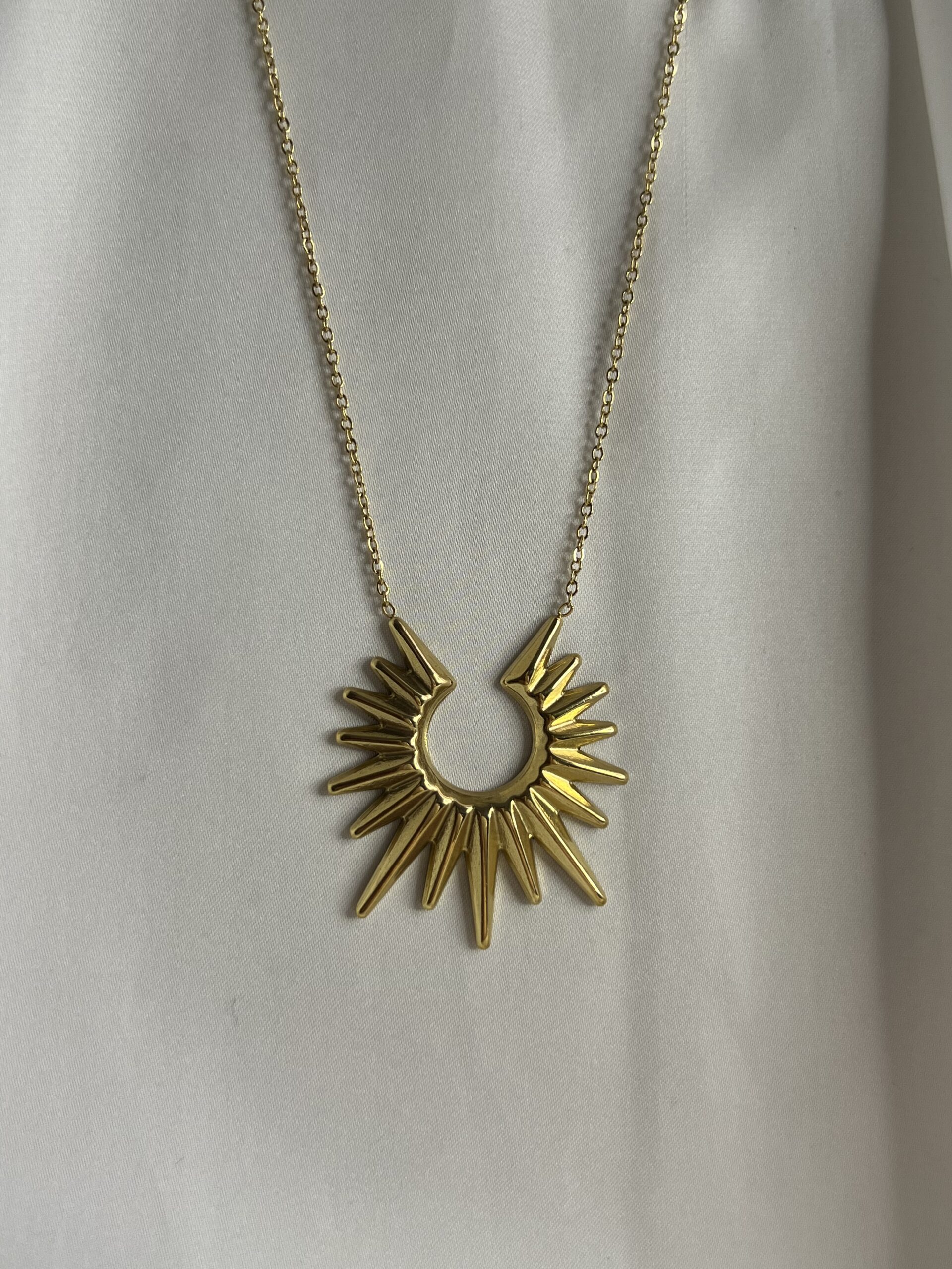 stainless steel gold necklace in the shape of ” Ra’a ” the sun symbol